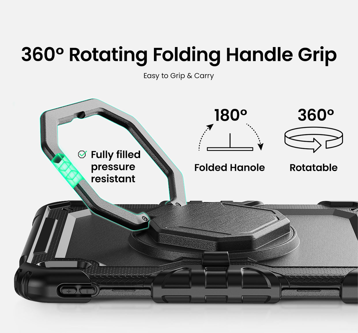 360° drehbarer Griff mit 180° Klappwinkel.