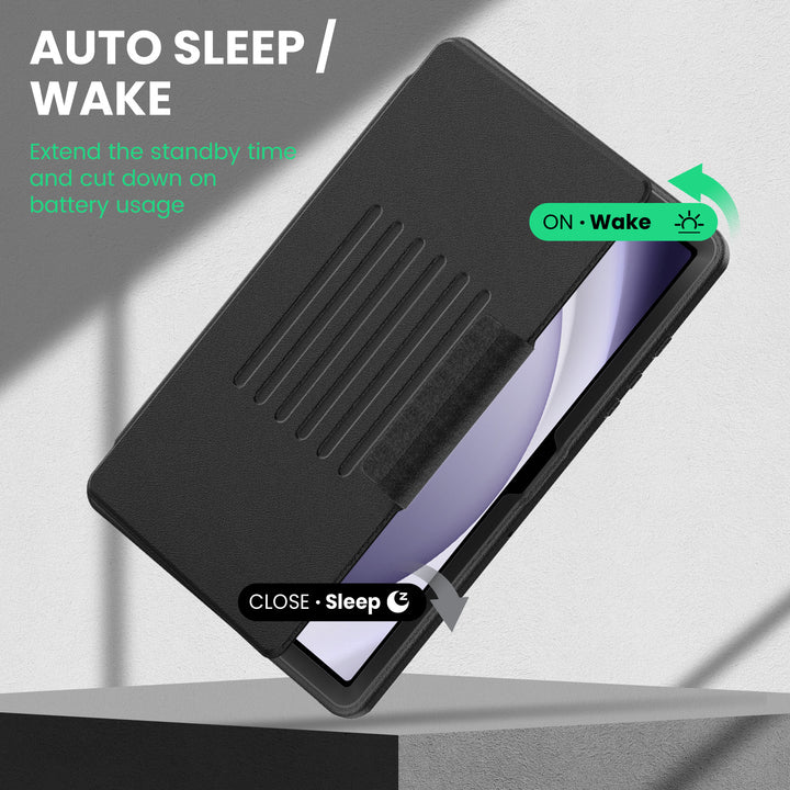 A strong built-in magnet instantly wakes your tablet when opened and puts it to sleep when closed — just like flipping a book. Effortless to open and securely closed when not in use.