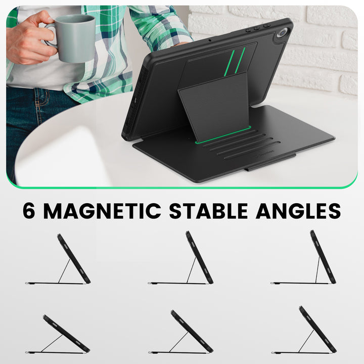 Our case features a magnetic locking system, allowing multiple angles to enhance your viewing experience.