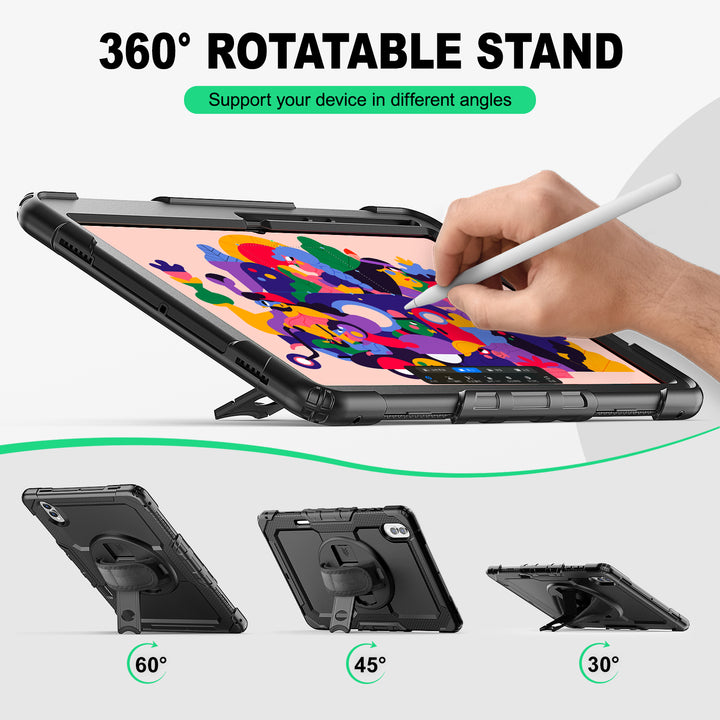 | Features | 360° rotatable hand strap, stable stand, detachable shoulder strap, screen protector, pencil holder |
