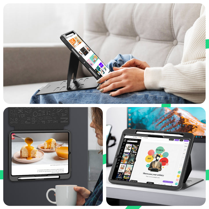 Multiple preset angles and strong magnetic alignment keep your tablet steady for typing, viewing, or drawing.